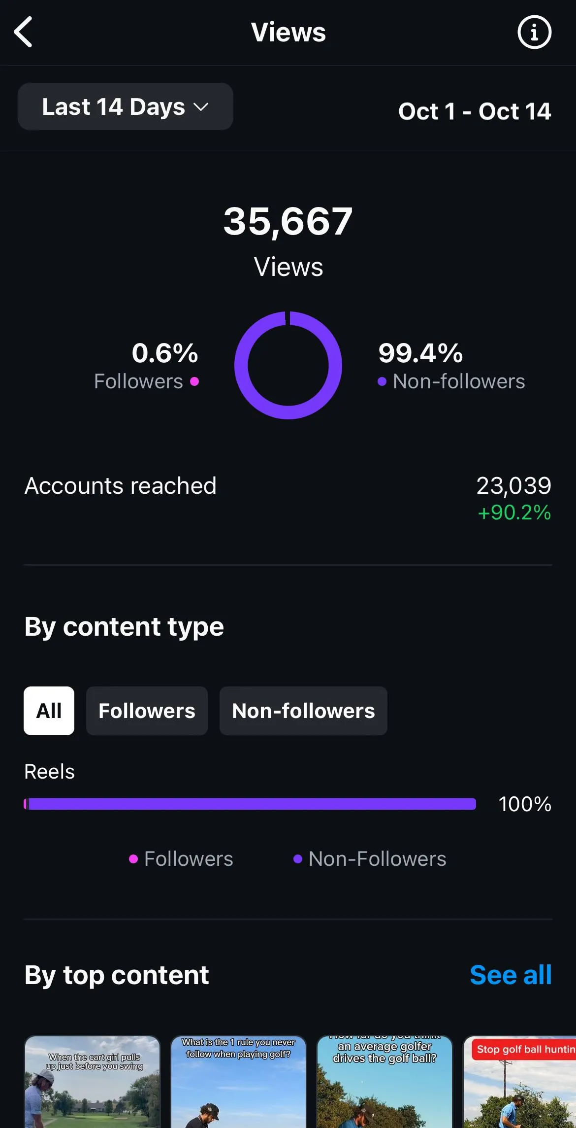 We started Cut Golf from scratch and in just 75 posts, we’ve had 1 out of every 15 posts hit 175,000 views, with an average around 20,000 views per video—even with fewer than 100 followers! Let us show you how to get these kinds of results.